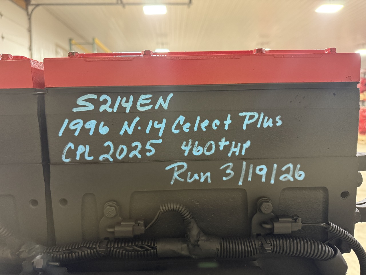 Used 1996 Cummins N14 Celect Plus Engine for Sale* S/N 11817578* 460+ HP* CPL 2025* Tested, Inspected, Run Test 3/19/26 - Runs Excellent - Watch video of running engine* For more information please call 800-738-7802* Inventory changes daily, please call for availability* Stock# S214EN