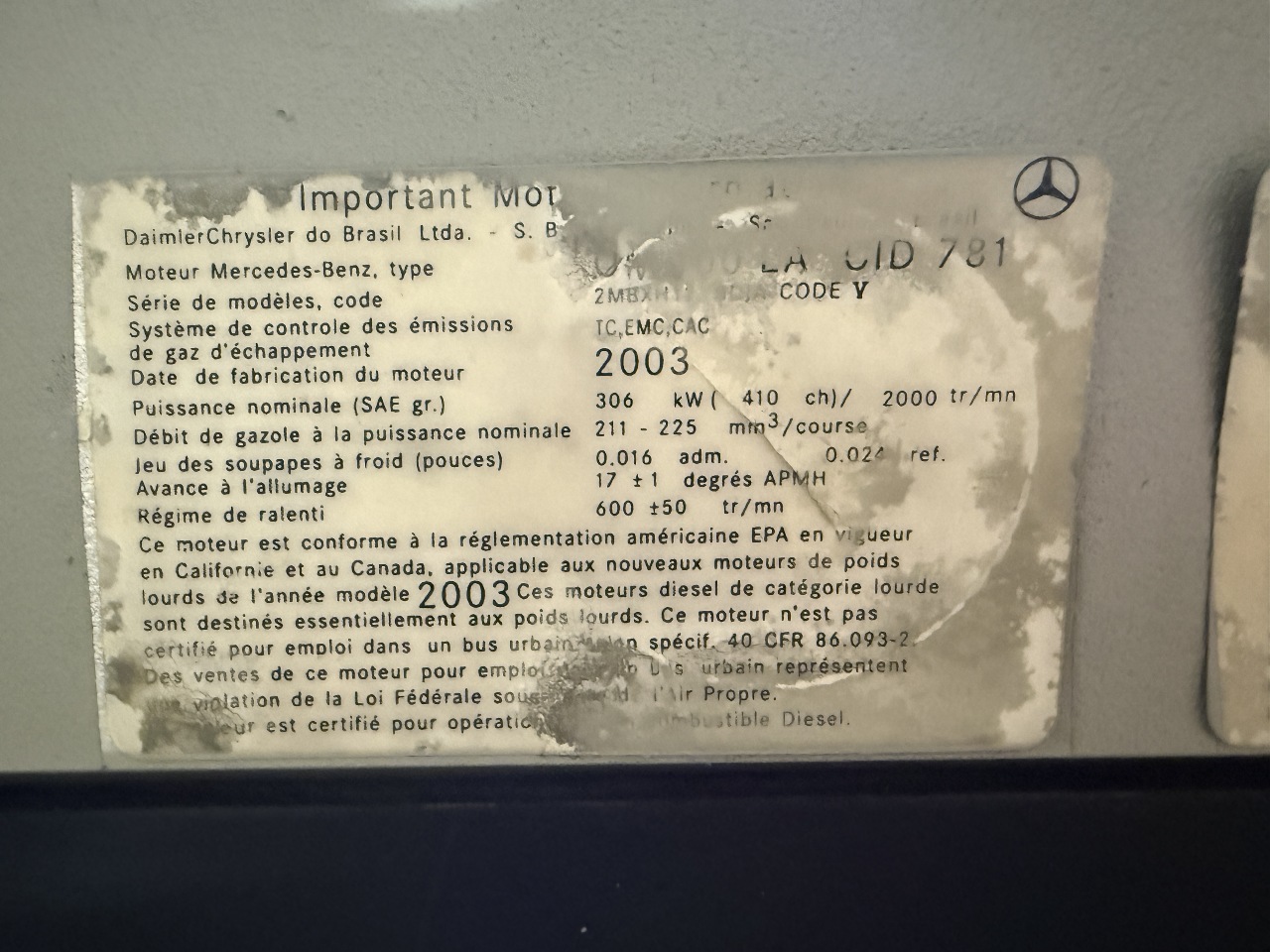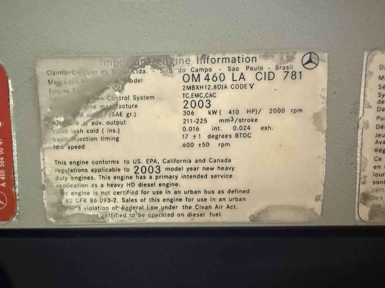 | Engine | MERCEDES OM460LA NON EGR 410HP 6 CYL |
