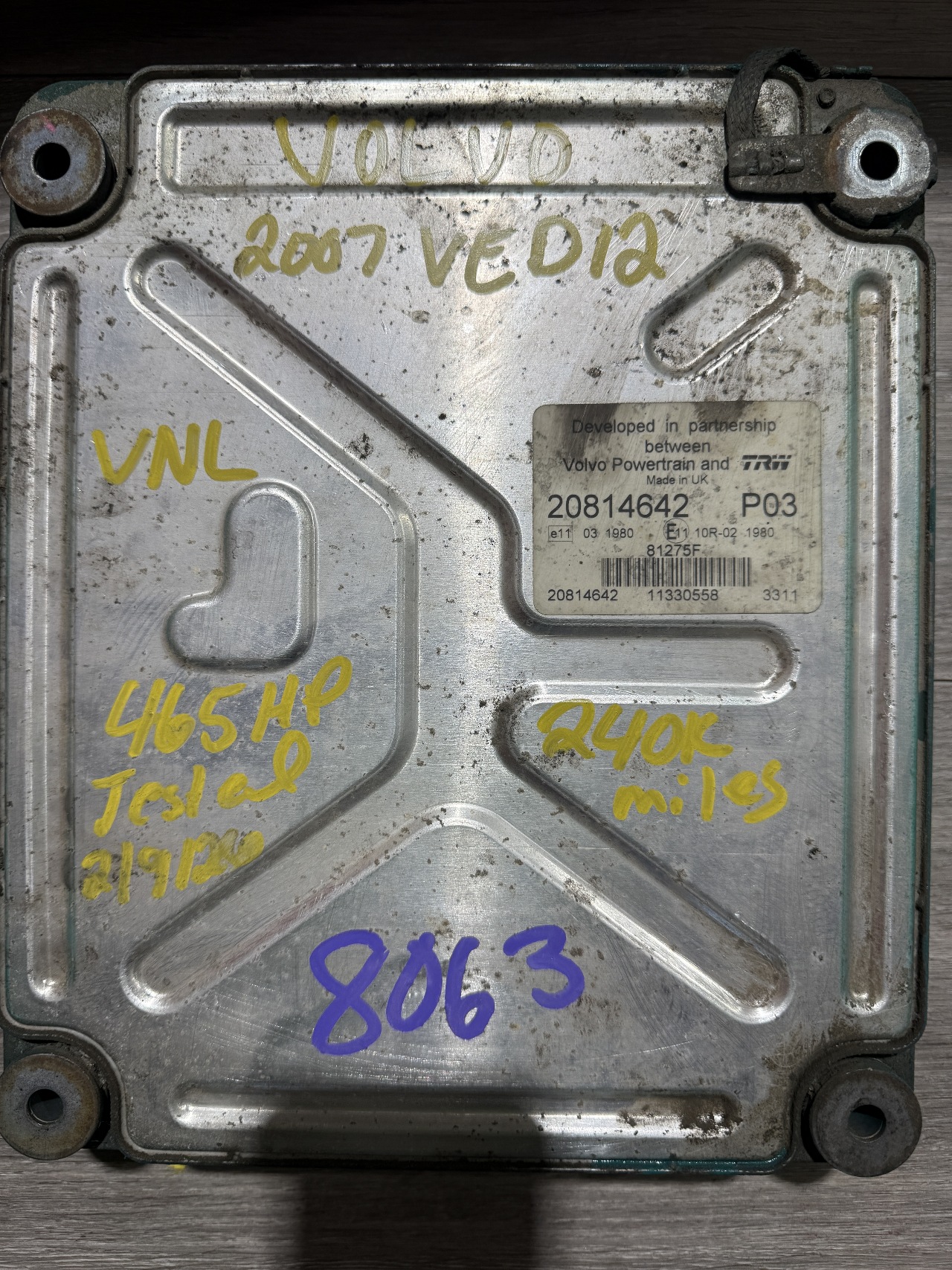 USED VOLVO ECM ECU FOR SALE P/N 20814642 2004-2007 MODEL VED12 ENGINE ECM 465 HP TESTED, GURANTEED PROGRAMMABLE STOCK# 8063 PRICE; $875