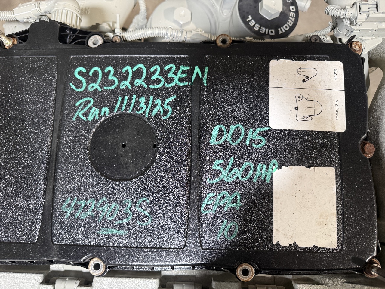 USED 2011 DETROIT DD15 ENGINE ASSEMBLY FOR SALE 2011 DETROIT DD15 EPA 10 S/N 472903S 560HP TESTED, INSPECTED RUN TEST 11/3/25 - WATCH VIDEO OF RUNNING ENGINE FOR MORE INFORMATION PLEASE CALL 800-738-7802 OR VISIT www.bootsandhankstruckparts.com SAME DAY SHIPPING AVAILABLE STOCK# S232233EN PRICE: $10,500 EXCHANGE