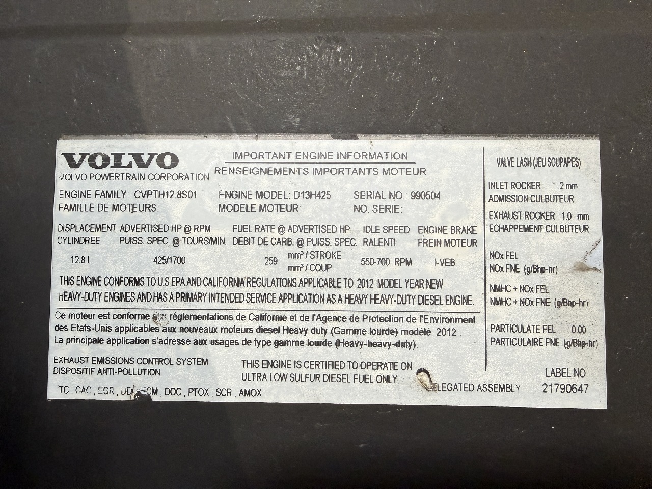 | Engine | VOLVO D13H 425HP 6 CYL |