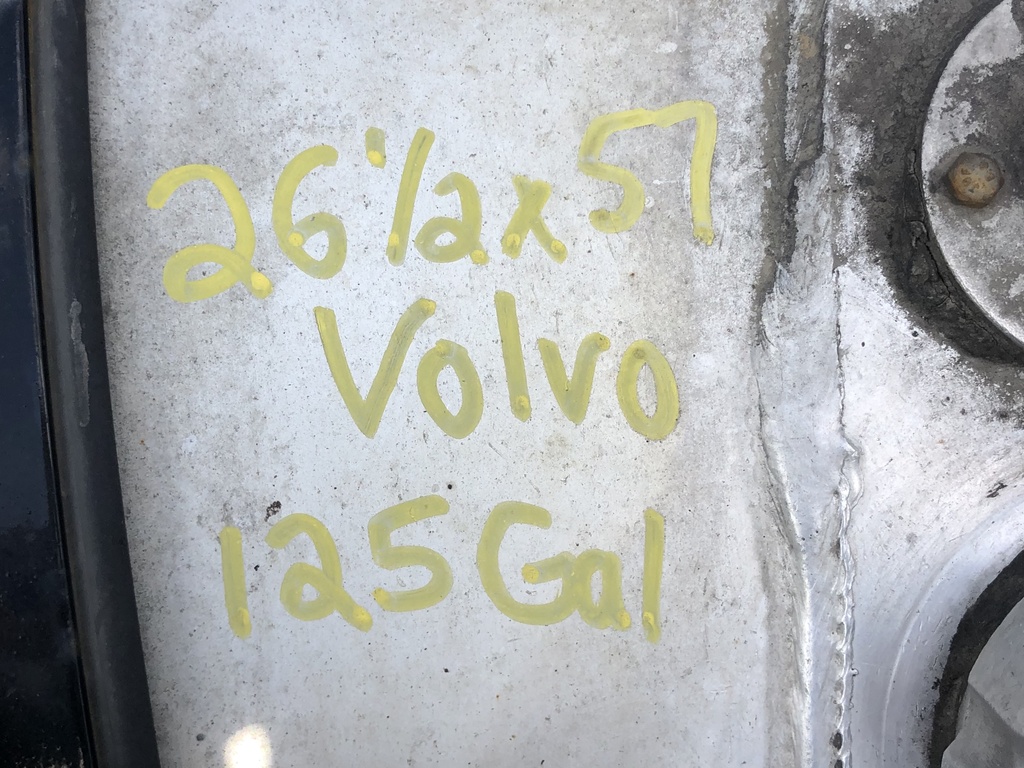 USED VOLVO DRIVER SIDE FUEL TANK 125 GALLON CAPACITY 26.5 X 57 ALUMINUM BRACKETS AND STRAPS AVAILABLE