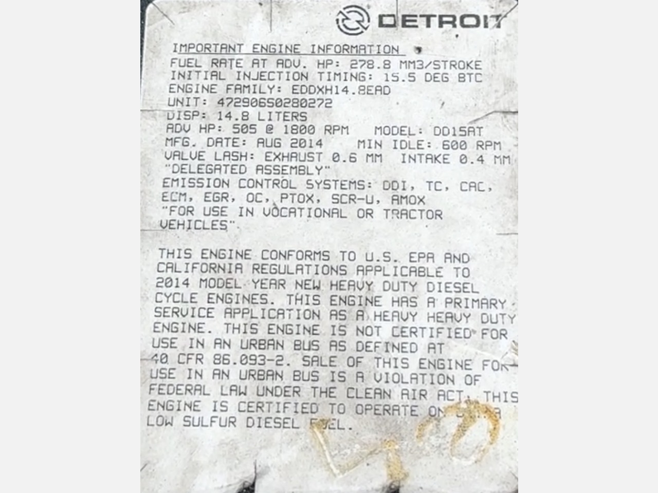 | Engine | DETROIT DD15 505HP 6 CYL |