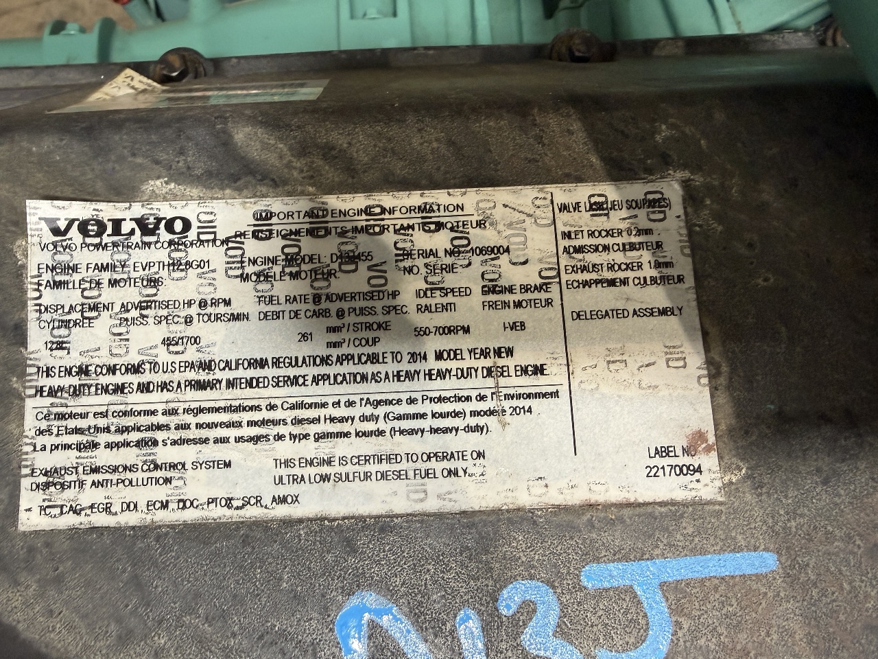 Used 2014 Volvo D13J Engine For Sale!!! S/N 1069004* 455HP* EPA 13* Tested, Inspected Run Test- 3/3/26 - Runs Nice* For more information please call 800-738-7802* Inventory CHANGES DAILY, please call for availability!!! Stock# S301EN
