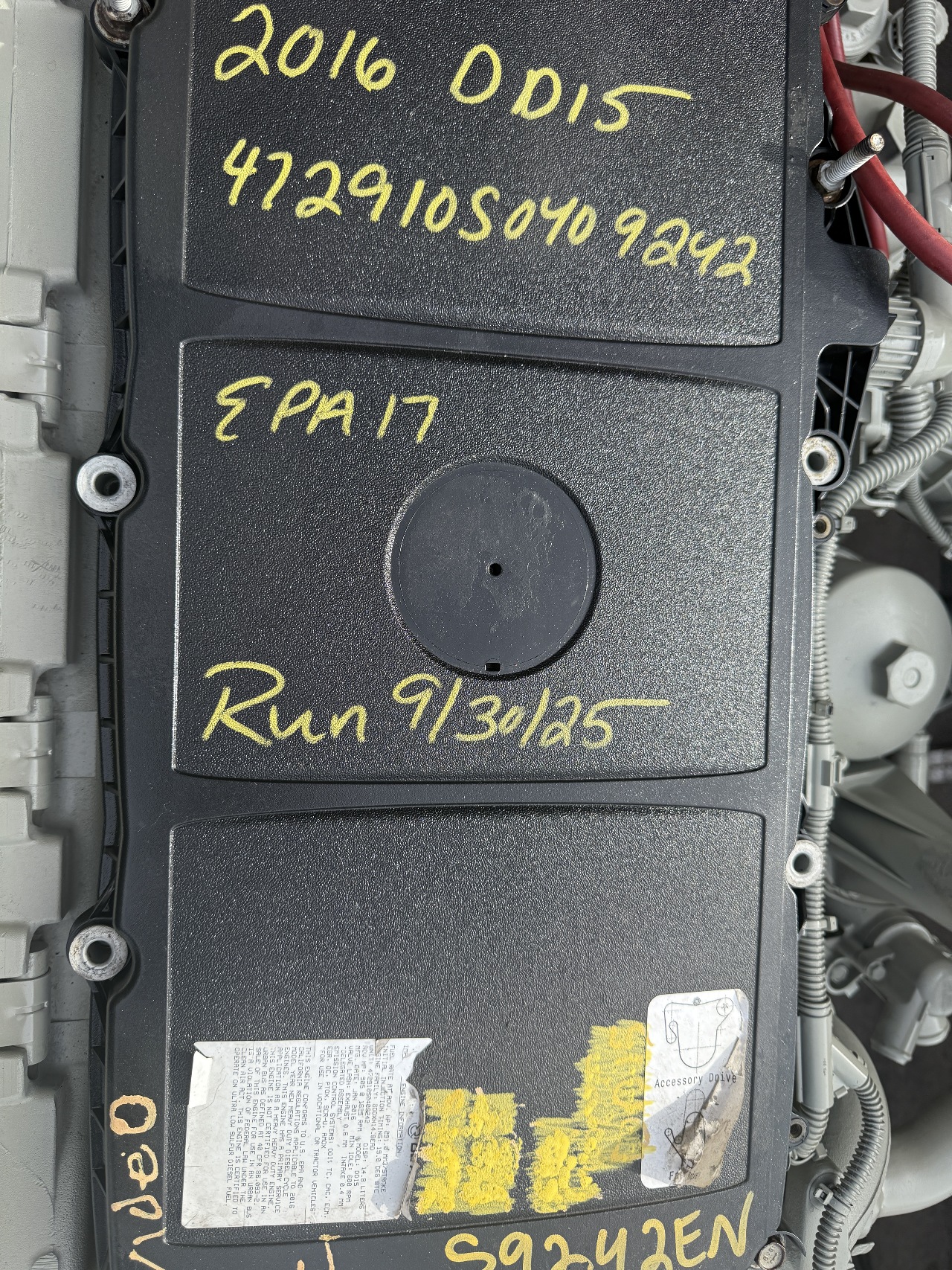 USED 2017 DETROIT DD15 ENGINE ASSEMBLY FOR SALE 2017 DETROIT DD15 S/N 472910S0409242 EPA 17 TESTED, INSPECTED, RUN TEST 9/30/25 WATCH VIDEO OF RUNNING ENGINE FOR MORE INFORMATION PLEASE CALL 800-738-7802 STOCK# S9242EN PRICE: $11500 EXCHANGE