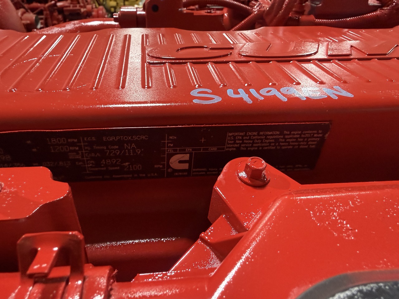 USED 2018 CUMMINS ISX12 ENGINE FOR SALE S/N 78064199 350HP CPL 4892 CM2250 TESTED, INSPECTED RUN TEST 2/25/26 - RUNS EXCELLENT!! FOR MORE INFORMATION PLEASE CALL 800-738-7802 STOCK# S4199EN PRICE: $24500 EXCHANGE
