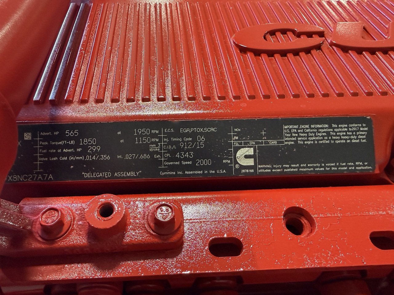 | Engine | CUMMINS X15 565HP 6 CYL |