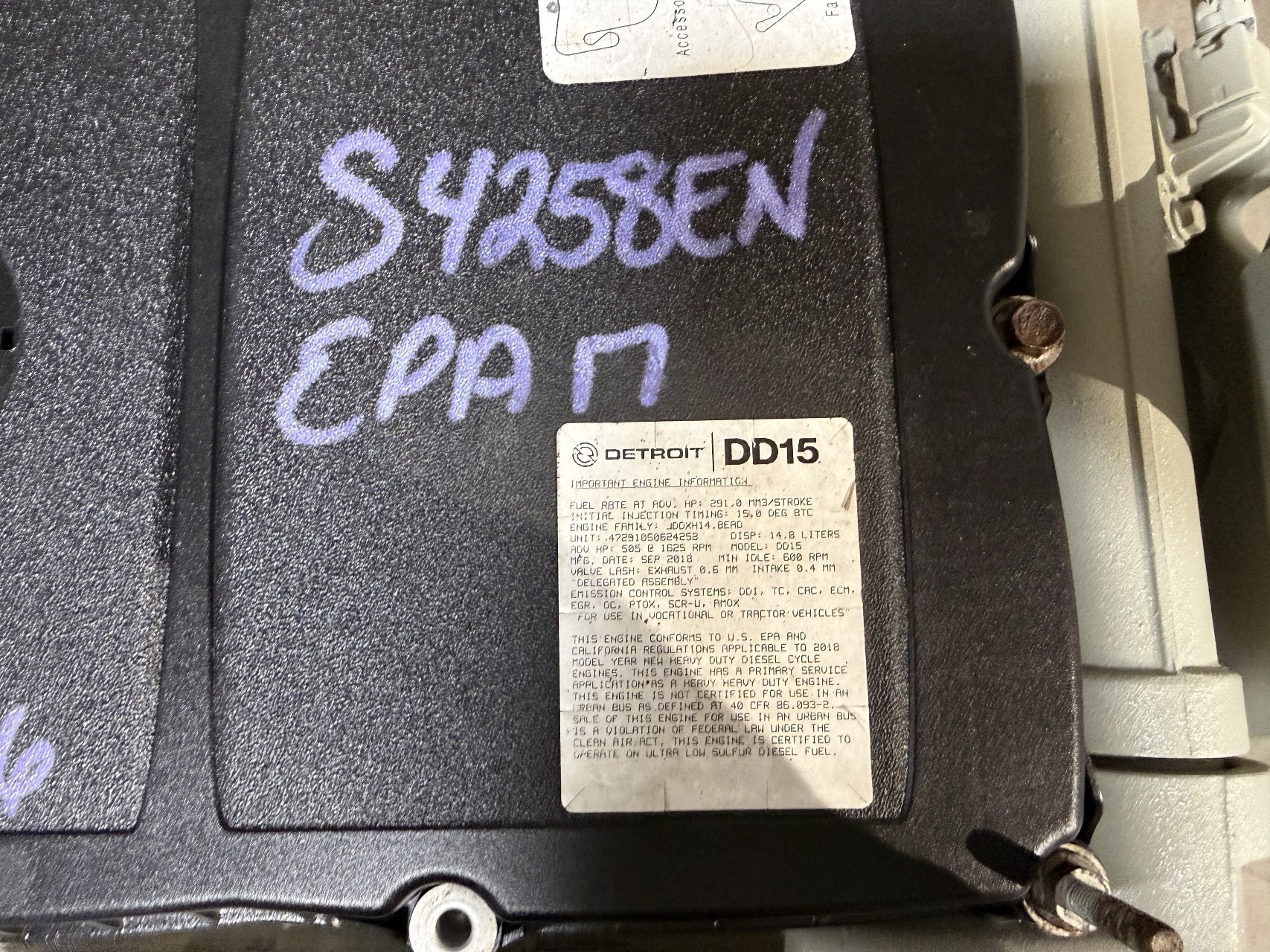 USED 2018 DETROIT DD15 ENGINE FOR SALE S/N 472910S0624258 EPA17 505HP TESTED, INSPECTED, RUN TEST 3/4/26 - WATCH VIDEO OF RUNNING ENGINE FOR MORE INFORMATION PLEASE CALL 800-738-7802 INVENTORY CHANGES DAILY PLEASE CALL FOR AVAILABILITY STOCK# S4258EN