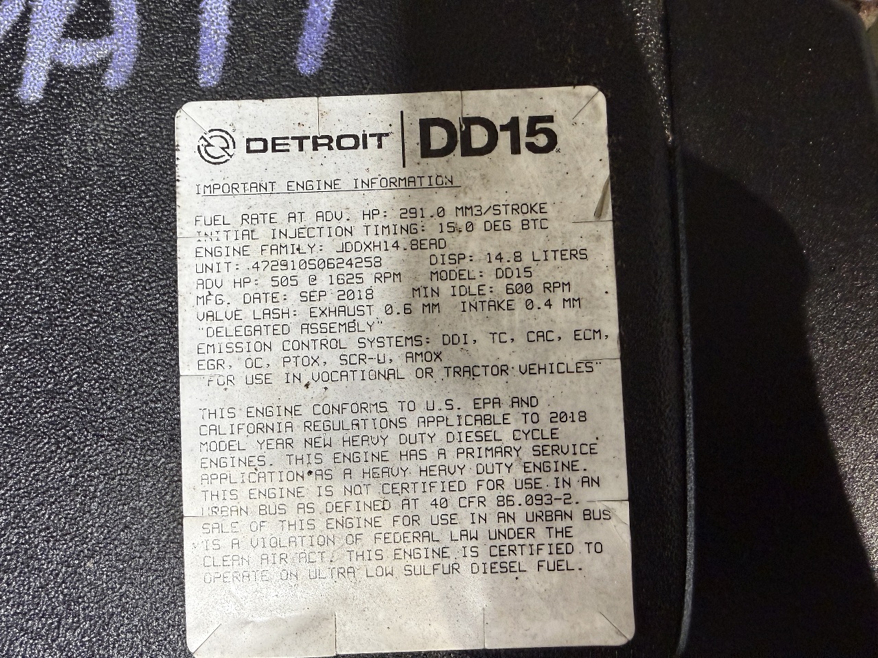| Engine | DETROIT DD15 505HP 6 CYL |